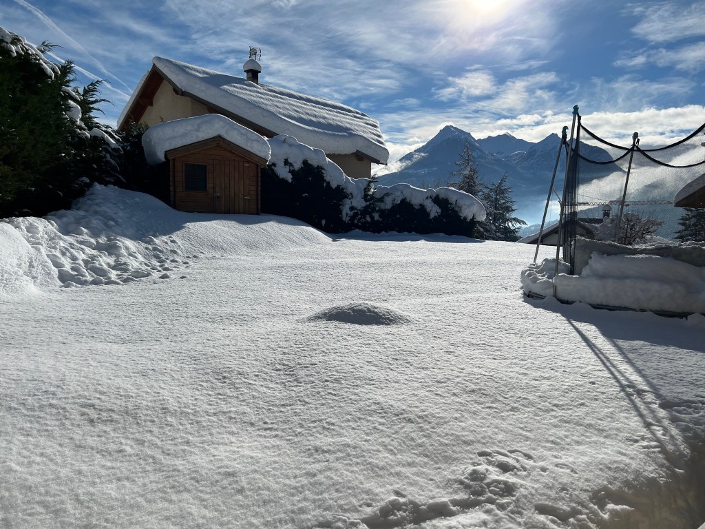 L’hiver la cheminée, le garage (qui donne sur le chemin goudronné du lotissement toujours déneigé), la vue sur les montagnes enneigées. Avec accès facile à toutes les activités.